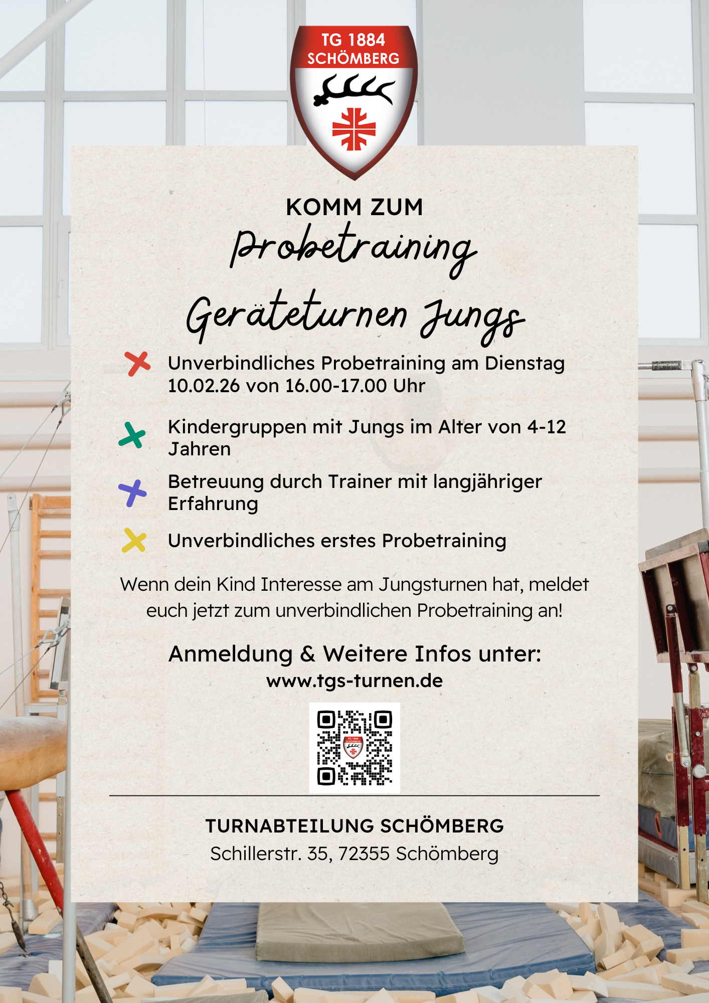 Liebe Turninteressierte, am 10.02.2026 ist es wieder so weit: Ein Probetraining für das Gerätturnen der Jungs (Jungsturnen) findet statt. Im…
